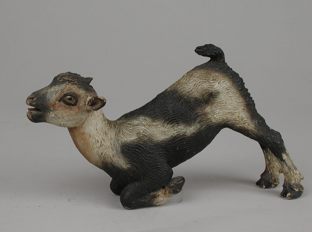 The kid is nicely modelled and painted with great charm and tenderness This combination of the nursing mother (see 1978.421.1) and baby animal, is a rare example and of high quality.