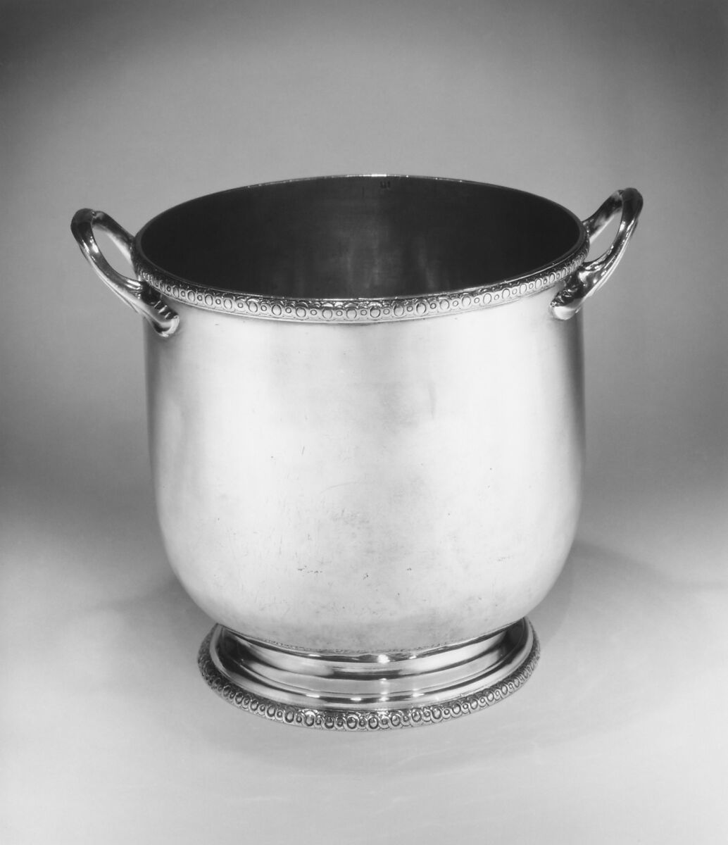 These wine coolers are part of a set of at least nine (as recorded in 1907) belonging to the so-called Czarskoe Selo service, named after one of the numerous imperial summer residences around Saint Petersburg. The foliate loop handles still represent the naturalistic influence of Rococo decoration, whereas the restrained form and narrow guilloche borders announce the dawn of Neoclassicism.
