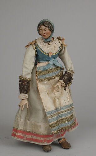 - Medium: Polychromed terracotta head; wooden limbs; body of wire wrapped in tow; silk garments; glass eyes