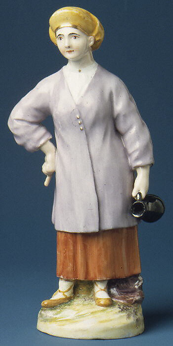 About 1780 the Imperial factory began the production of a large series of figures depicting Russian national types, of which fourteen are represented in the Linsky Collection. Like most of the figures, this figure is modeled from engravings published by Johann Gottlieb Georghi in his Description if All the Peoples Inhabiting the Russian State (editions of 1774, 1776, and later). The authorship of the models themselves is not established, but some may be attributable to Jean-Dominique Rachette (1744–1809), chief modeler at the factory from 1779 to 1804.