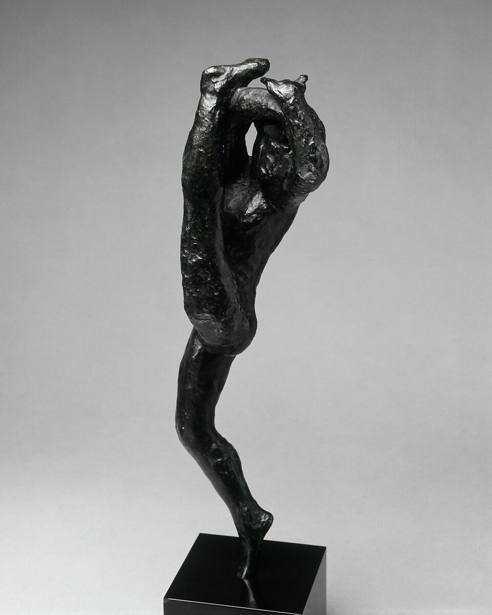 In his quest to capture continuous movement in sculpture, Rodin studied dancers. This bronze was cast after a sketch that he rapidly modeled in clay while observing a live dancer perform in his studio. The figure’s implausible pose is the result of Rodin’s experimental efforts to fuse several sequential postures into one.