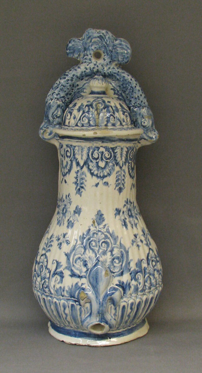 Faience, or tin-glazed and enameled earthenware, first emerged in France during the sixteenth century, reaching widespread usage among elite patrons during the seventeenth and early eighteenth centuries, prior to the establishment of soft-paste porcelain factories. Although characterized as more provincial in style than porcelain, French faience was used at the court of Louis XIV as part of elaborate meals and displays, with large-scale vessels incorporated into the Baroque garden designs of Versailles. Earlier examples of French faience attest to the strong influence of maiolica artists from Italy. Later works demonstrate the ways in which cities such as Nevers, Rouen, Lyon, Moustiers, and Marseille developed innovative vessel shapes and decorative motifs prized among collectors throughout Europe.
