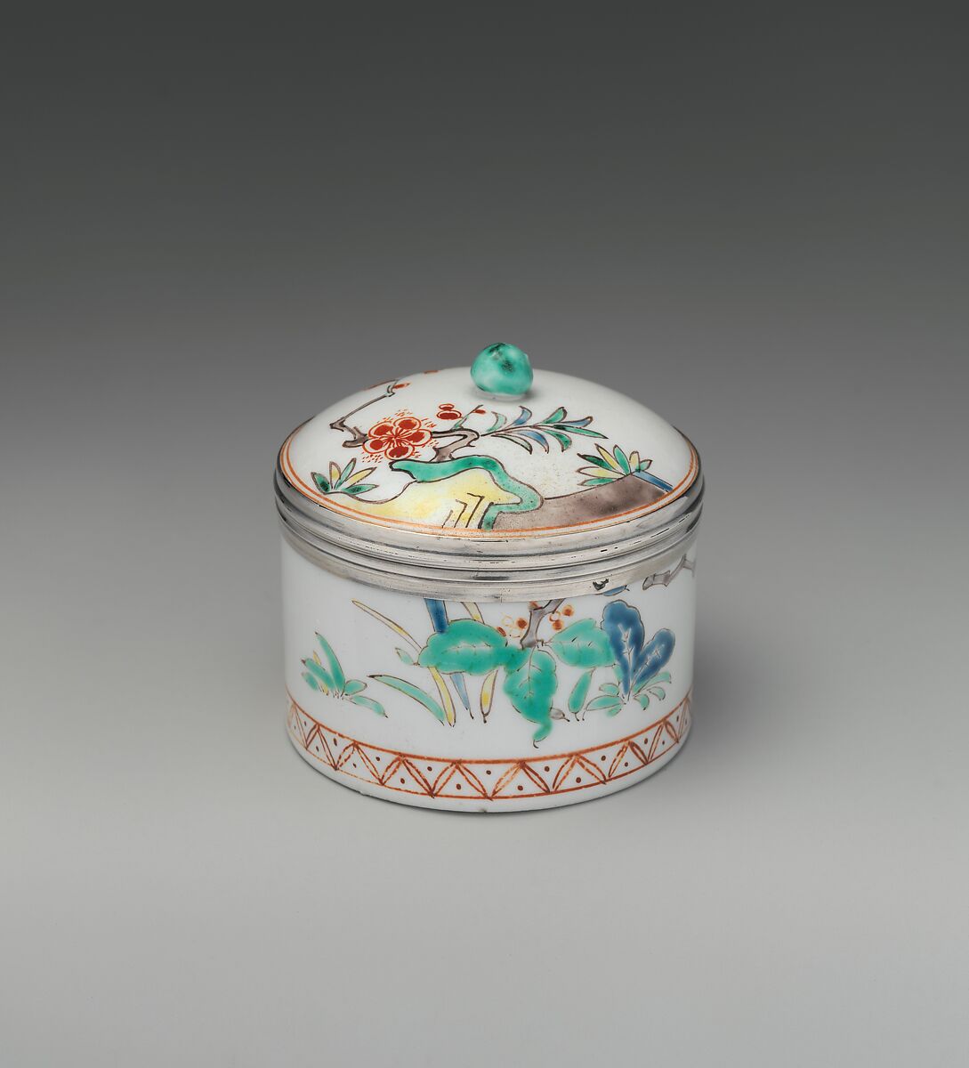 The widespread use of beauty products in eighteenth-century France inspired the creation of porcelain toilet jars, or pots à fard, in different sizes, sometimes provided with silver mounts.