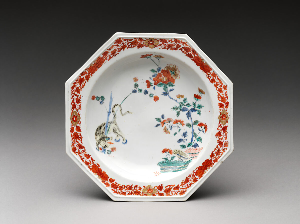 Known in eighteenth-century England as the "wheat sheaf and tyger pattern" (the wheat sheaf is actually a Japanese brushwood fence), this design might have been derived from either a Japanese plate or a Meissen copy of one.