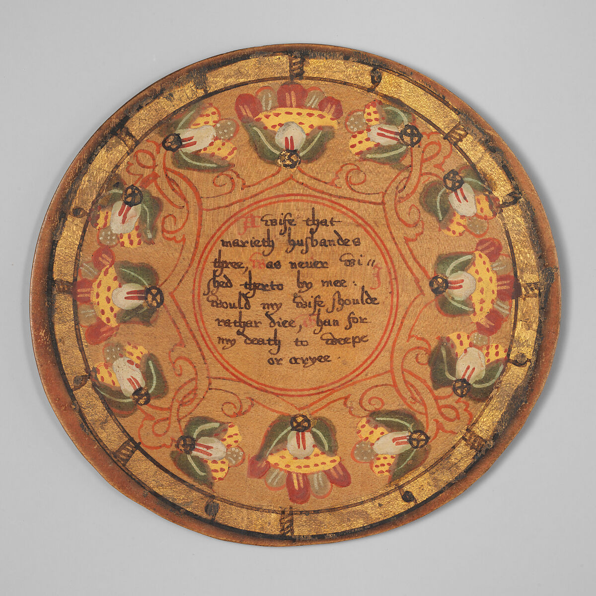 Banquets usually ended with candied fruits or other sweetmeats served on such decorative "spice dishes" of silver or wood. The gold effects were achieved with yellow varnish over a layer of silver-leaf. The verses were written in Black Letter script, with elaborate capital letters in Lombardic script. The verses, either amusing or moralizing, were shared with the other diners.