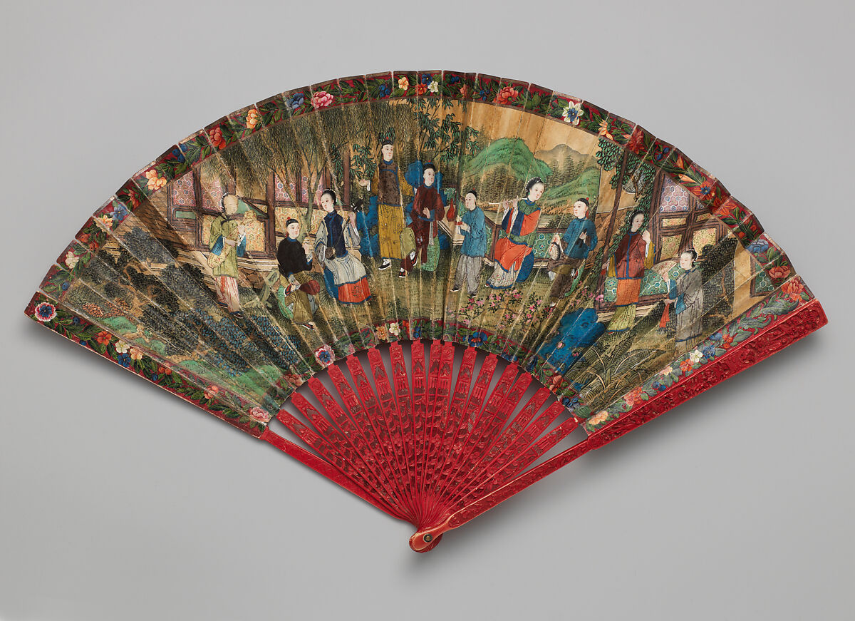 - Title: Folding Fan with Scene of Figures in a Courtyard Garden