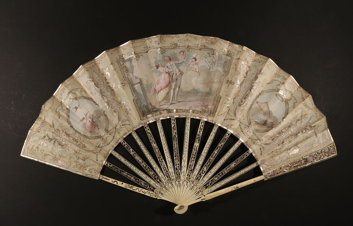 - Medium: Silk, paint, silver thread, paillettes; ivory, silver foil, glass or mother-of-pearl