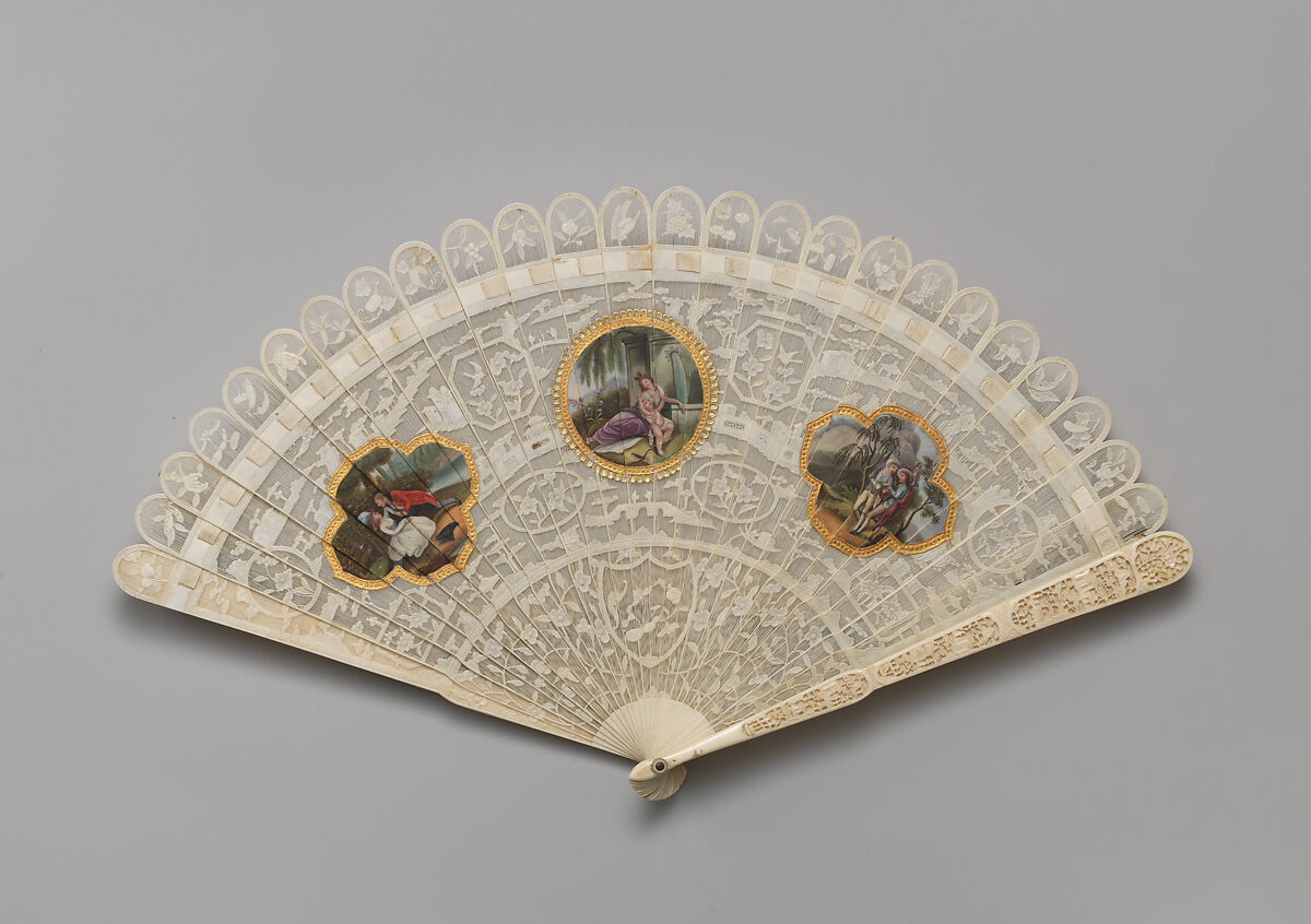 - Title:Brisé fan, with representations of pastoral scenes flanking Venus and Cupid