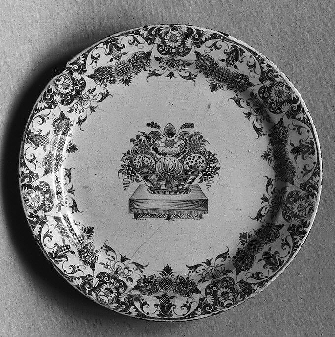 While faience can be created from a wide mixture of clays, it is foremost distinguished by the milky opaque white color achieved by the addition of tin oxide to the glaze. French faience is typically divided into two types. Grand feu (high fire) describes pieces that have been decorated with glaze and metallic oxides before being fired a single time at a high temperature of around 1650°F (900°C). Petit feu (low-fire) faience, developed in the second half of the eighteenth century, refers to a process whereby the clay body is fired before being glazed and decorated with metallic oxides and then fired again at a lower temperature; pieces can also go through a third firing. Grand feu pieces have a more limited color palette that consists of blue, yellow, brown-purple, and green. By contrast, the lower firing temperature of petit feu faience enabled both greater precision in painting techniques and variety in the range of colors.