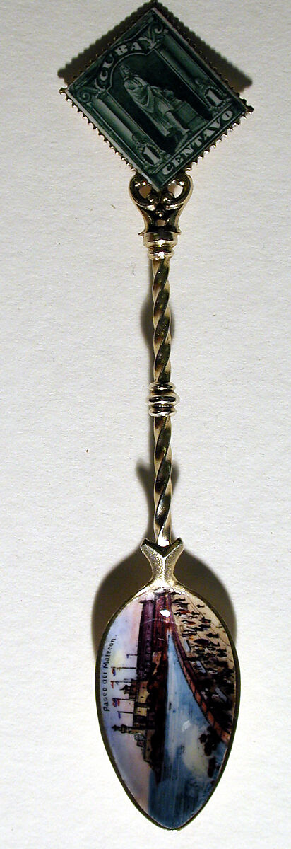 • Title: Souvenir spoon with view of the Paseo del Maleron and finial in form of a postage stamp