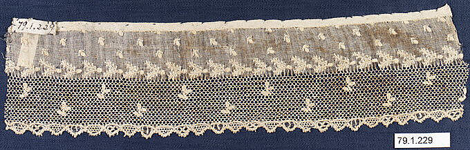 - Medium: Drawnwork, needle lace, resembling point d’Alençon
