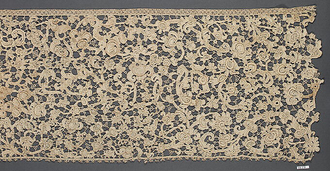 - Medium: Bobbin lace, gros point lace