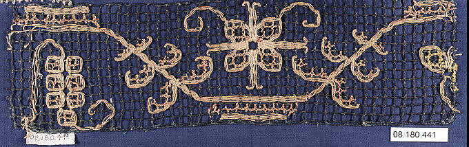 - Medium:Embroidered net, punto à rammendo