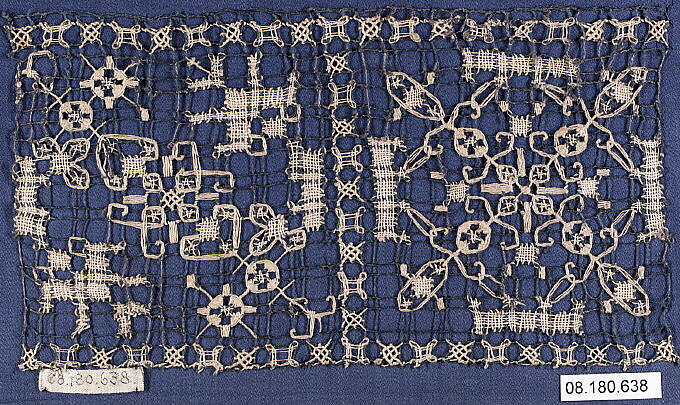 - Medium: Embroidered net, punto à rammendo, punto à tela