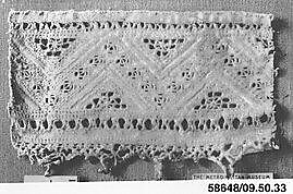 - Medium:Cutwork, drawnwork, bobbin lace