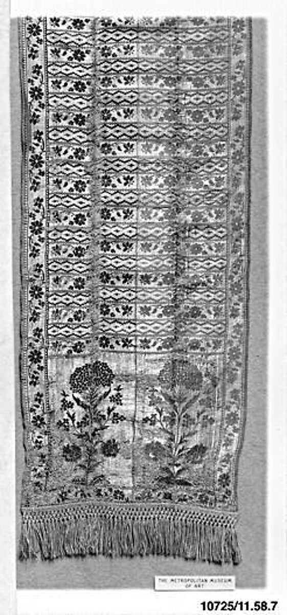 - Medium: Silk and metal thread, metal fringe