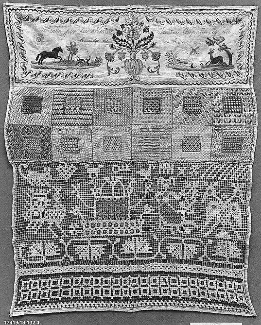 - Title:Sampler with darning and lace stitches
