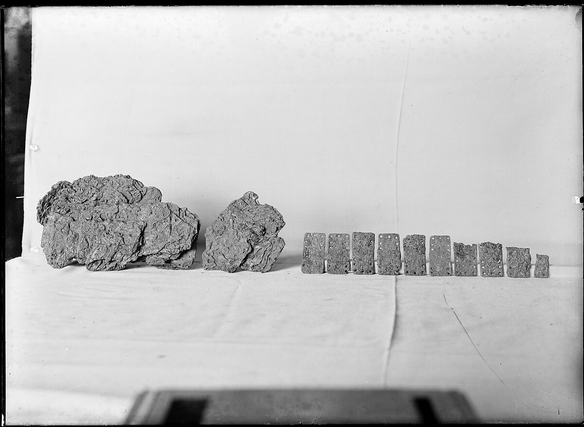 - Dimensions: largest fragment: L. 8 1/4 in. (21.0 cm); W. 5 1/4 in. (13.4 cm); smallest fragment: L. 1 5/8 in. (4.1 cm); W. 1 1/8 in. (2.8 cm)