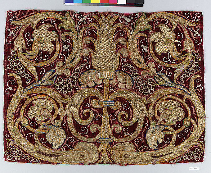- Medium: Silk and metal-wrapped thread on velvet
