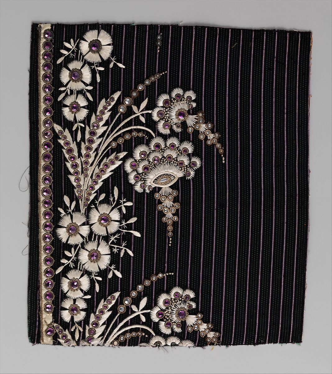 - Medium: Silk and metal thread, glass on silk velvet