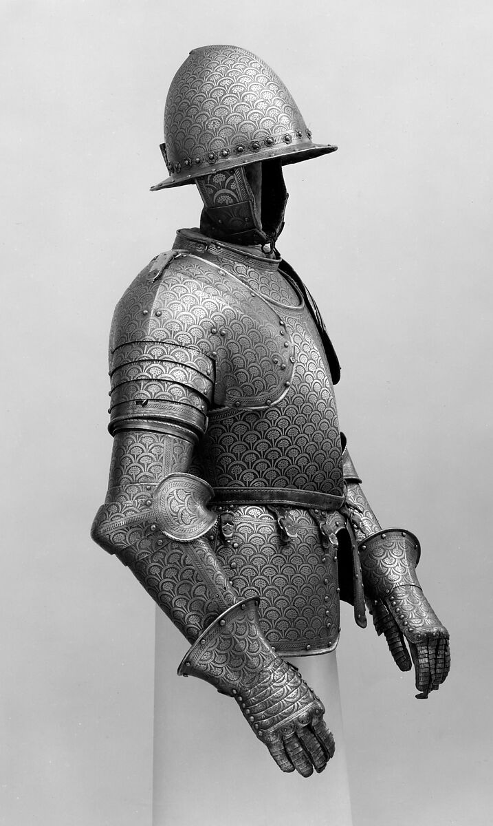 - Date: ca. 1600; cheekplates of helmet and part of left gauntlet thumb, probably 19th century