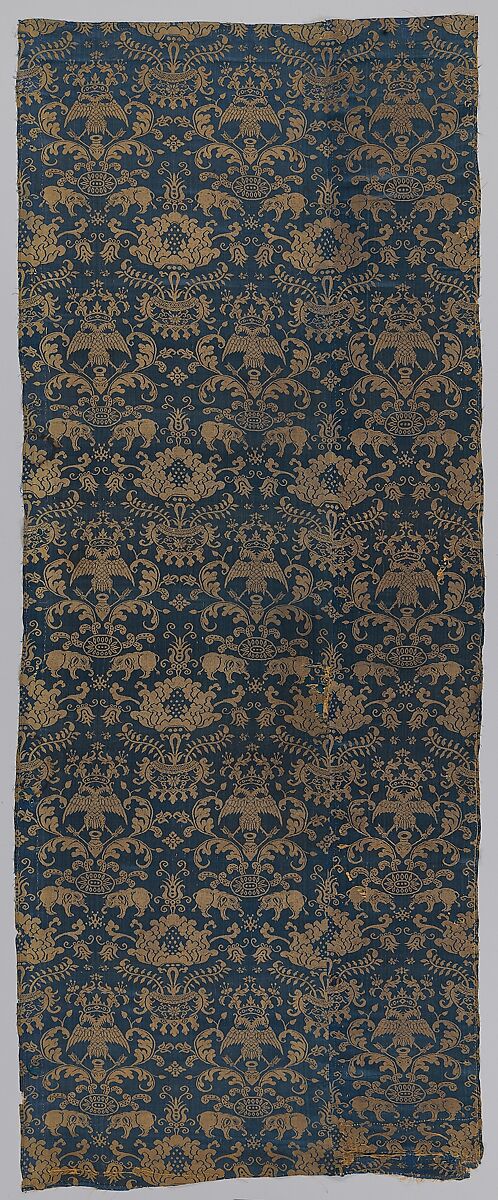 - Title: Textile with elephants, crowned double headed eagles, and flowers
