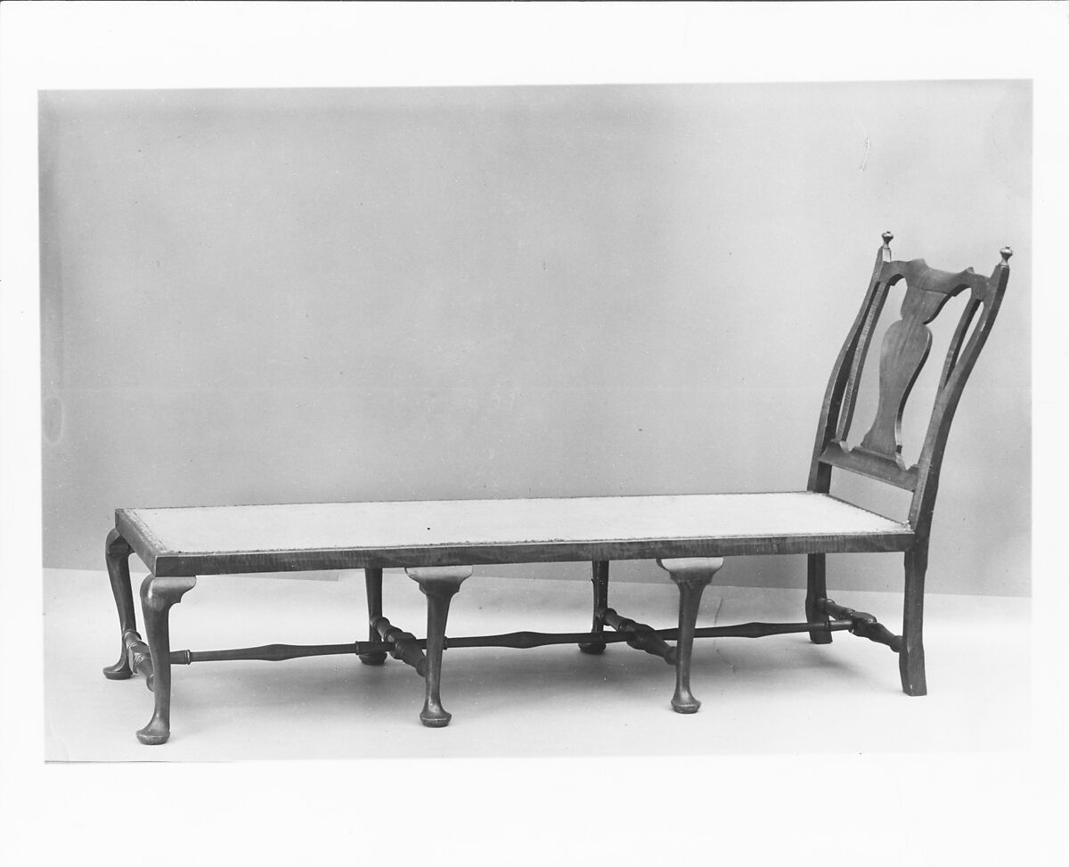 This is a classical example of the New England cabriole leg couch. While the origin of this uncommon form cannot be narrowly localized, this couch appears to be from Newport. The shape of the knees and size of the pad feet match features on a documented Newport easy chair, 50.228.3. Certain features, such as the outline of the baluster splat, suggest an attribution to the Rhode Island cabinetmaker Job Townsend.