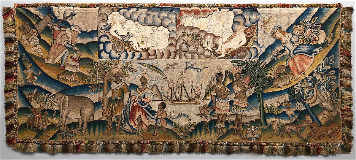 - Title: Panel from a table carpet showing the Four Continents, the Seasons, and Four Planets