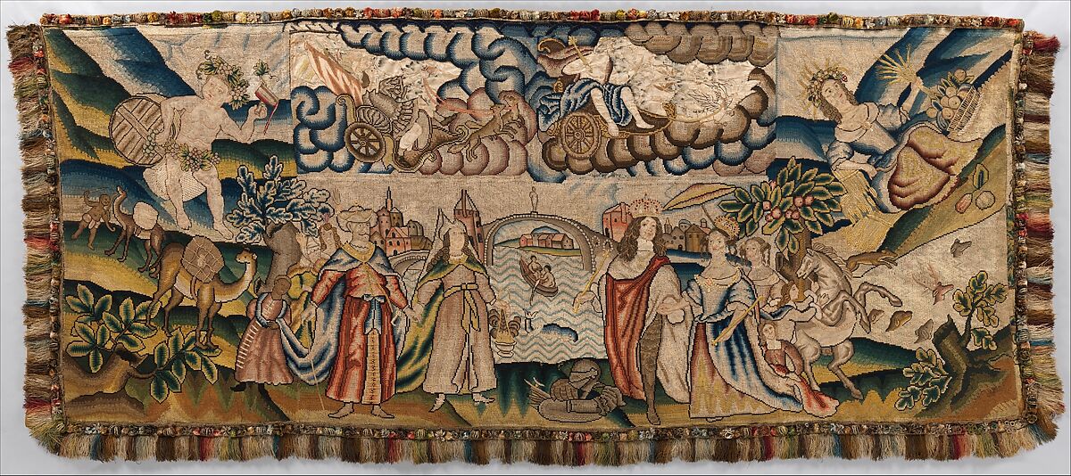 - Title:Panel from a table carpet showing the Four Continents, the Seasons, and Four Planets