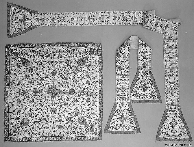 Though Jesuit priests were received at the Chinese court with great appreciation of their learning and courtesy, a misunderstanding occurred between the Pope and Emperor K’ang-his toward the end of the latter’s life. By the second half of the eighteenth century, Christian services were forbidden in China and vestments such as these were made only for a market outside China.
