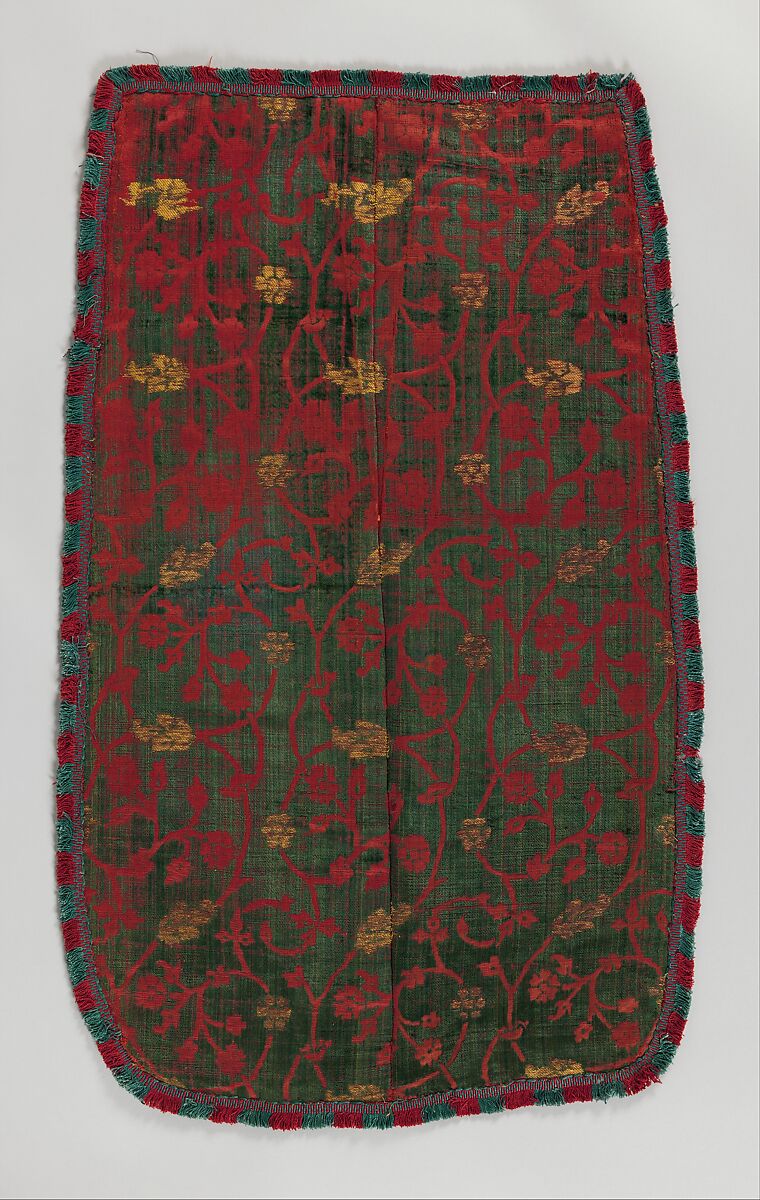 - Medium:Silk, wrapped metal thread, natural linen tabby lining