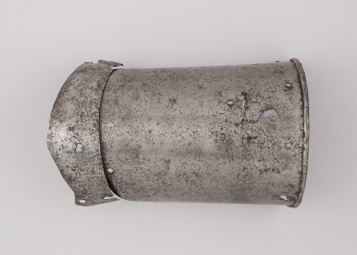 This is part of a large find of medieval armor discovered in 1840 in the ruins of the fortress of Chalcis, on the Greek island of Euboea (then a Venetian colony called Negroponte). The fortress had been captured and destroyed by the Turks in 1470. Now divided largely between the Ethnological Museum, Athens, and The Metropolitan Museum of Art, the Chalcis hoard contains many rare and unusual elements of fourteenth- and fifteenth-century armor. Of particular importance are the variety of headpieces and the many fragments of brigandines (armor for the torso constructed of small plates riveted to layers of fabric), some of which retain portions of their original velvet covering. The Chalcis armor provides a unique picture of the armament used in the Aegean, one of the easternmost military outposts of the Venetian empire.