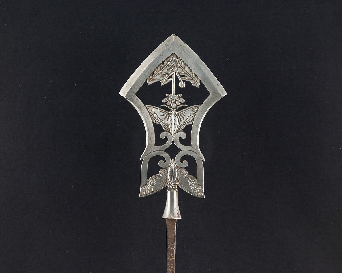 Large arrowheads, pierced and elaborately chiseled with landscapes, birds, flowers, dragons, and Buddhist divinities, were created to be admired for the beauty of their metalwork and design rather than for use in archery. Such highly elaborate examples may have been made for presentation or as a votive offerings to a shrine.