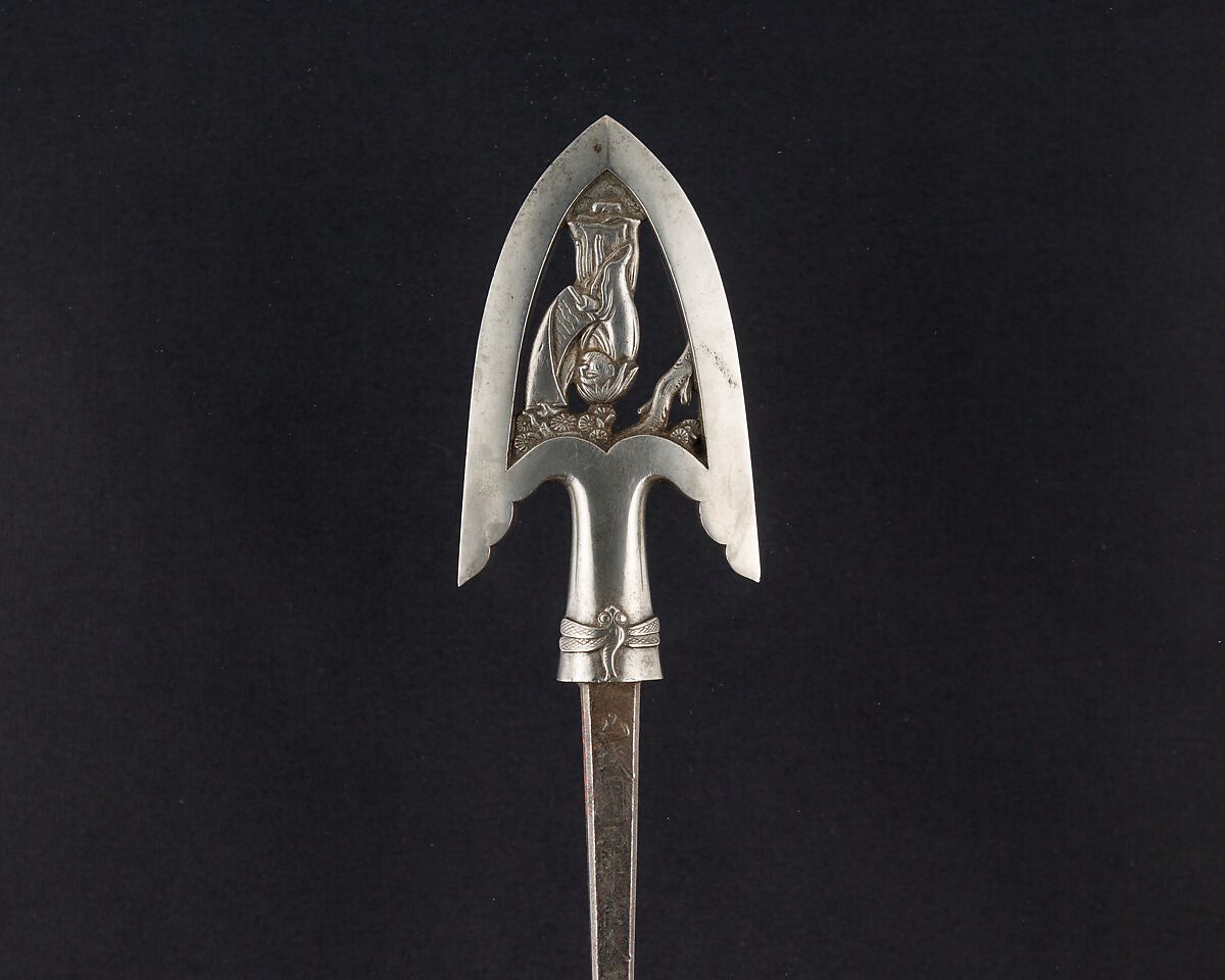 Large arrowheads, pierced and elaborately chiseled with landscapes, birds, flowers, dragons, and Buddhist divinities, were created to be admired for the beauty of their metalwork and design rather than for use in archery. Such highly elaborate examples may have been made for presentation or as a votive offerings to a shrine.