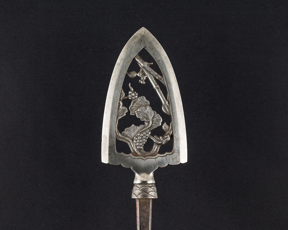 Large arrowheads, pierced and elaborately chiseled with landscapes, birds, flowers, dragons, and Buddhist divinities, were created to be admired for the beauty of their metalwork and design rather than for use in archery. Such highly elaborate examples may have been made for presentation or as a votive offerings to a shrine.