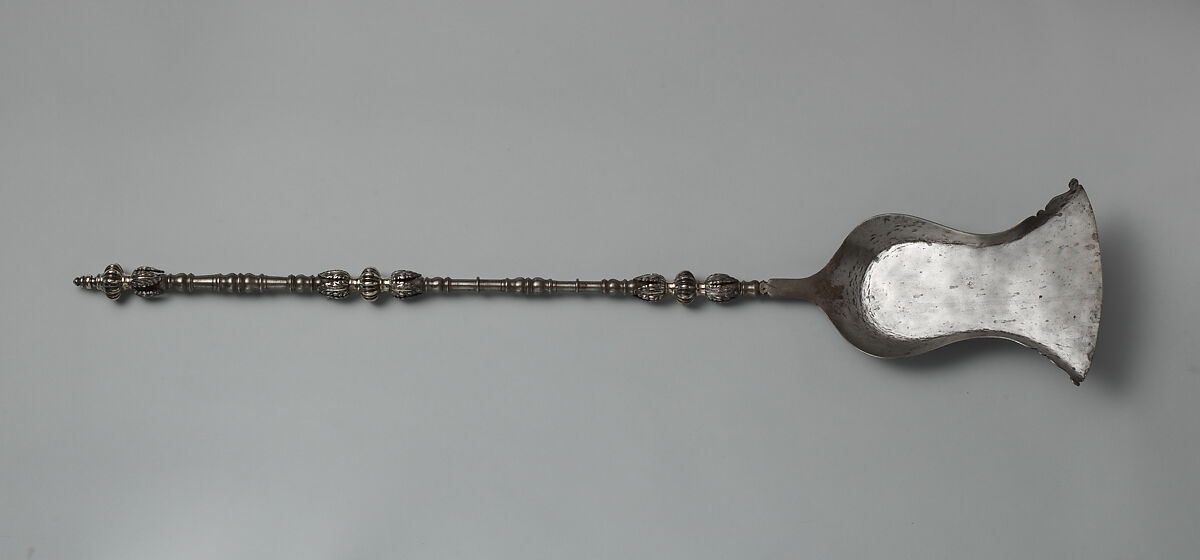 This set of fire tools 68.141.156–.159) was probably made for John Maitland on the occasion of his wedding to the Countess of Dysart. In 1647 Maitland raised an army to rescue Charles I. After the Battle of Worcester, when he was taken prisoner by Commonwealth troops, he was sent to the Tower. After his release (166) he became Prime Minister and Secretary of State. On May 1, 1672, he was created Marquess of March and Duke of Lauderdale, and on June 3 he was installed at Windsor as Knight of the Garter.