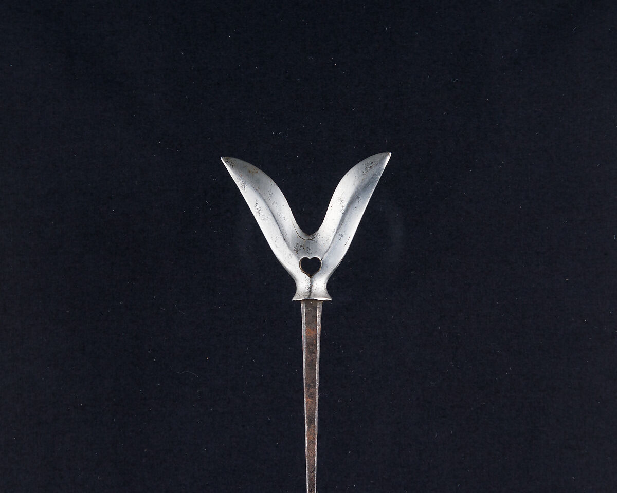 Large arrowheads, pierced and elaborately chiseled with landscapes, birds, flowers, dragons, and Buddhist divinities, were created to be admired for the beauty of their metalwork and design rather than for use in archery. Such highly elaborate examples may have been made for presentation or as a votive offerings to a shrine.