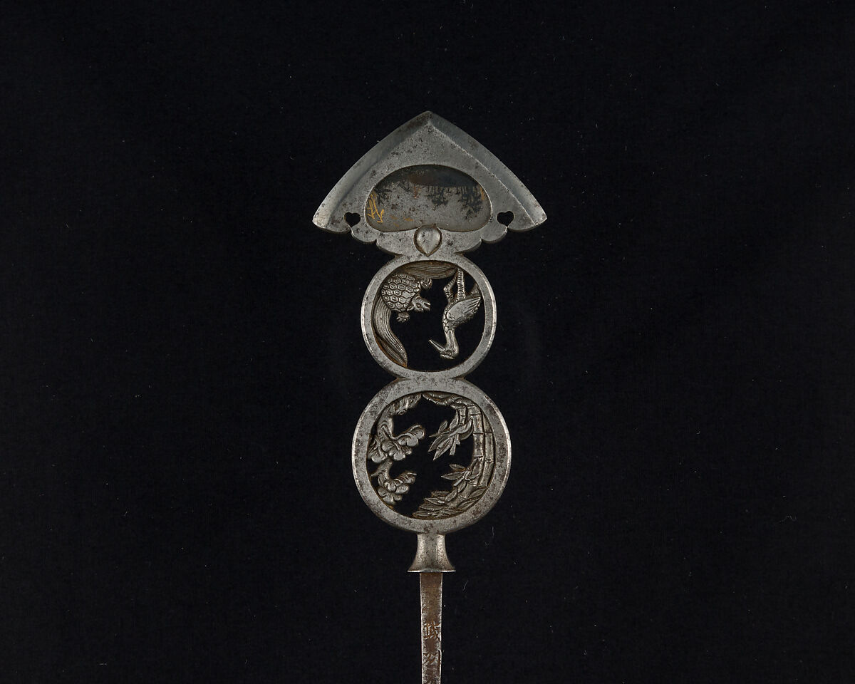 Large arrowheads, pierced and elaborately chiseled with landscapes, birds, flowers, dragons, and Buddhist divinities, were created to be admired for the beauty of their metalwork and design rather than for use in archery. Such highly elaborate examples may have been made for presentation or as a votive offerings to a shrine.