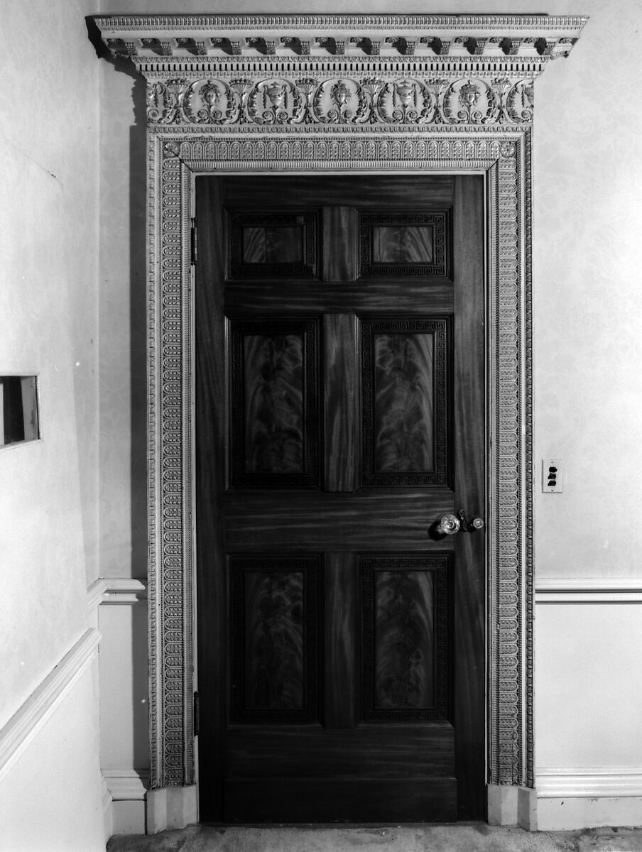 - Medium: Pine frame painted grey, red; blue and parcel-gilt mahogany door