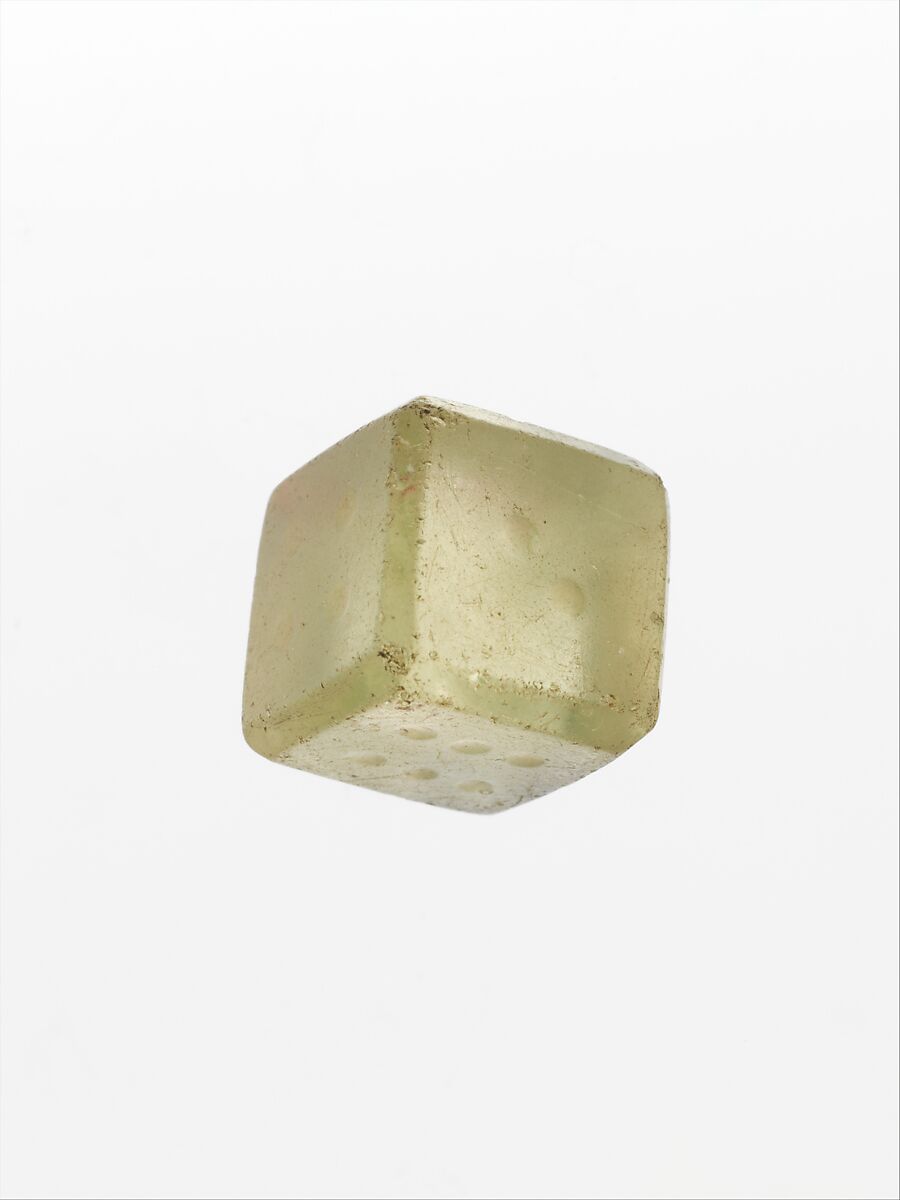 Roman dice were made from a number of different materials, including bone, glass, and semiprecious stones such as rock crystal.