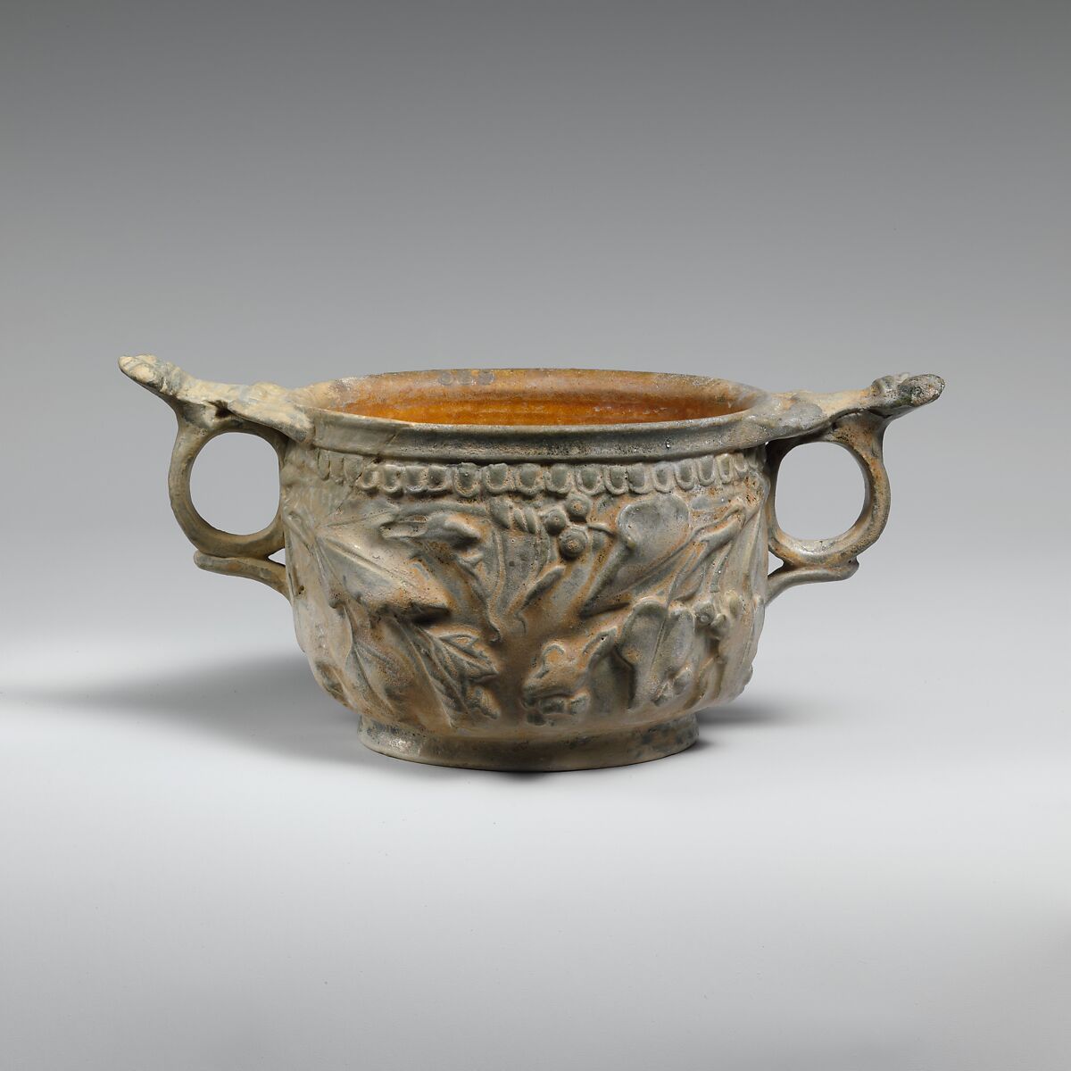Terracotta lead-glazed scyphus (drinking cup)