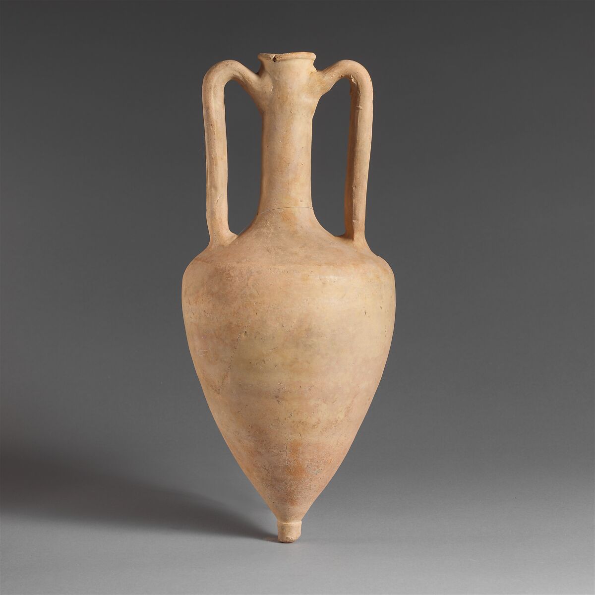 Amphora with long neck and pointed bottom, of unpainted clay.
