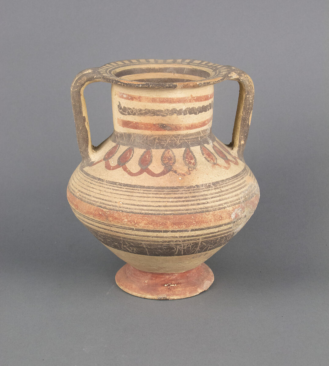 Krater with bands, wavy lines, and lotus bud ornament.
