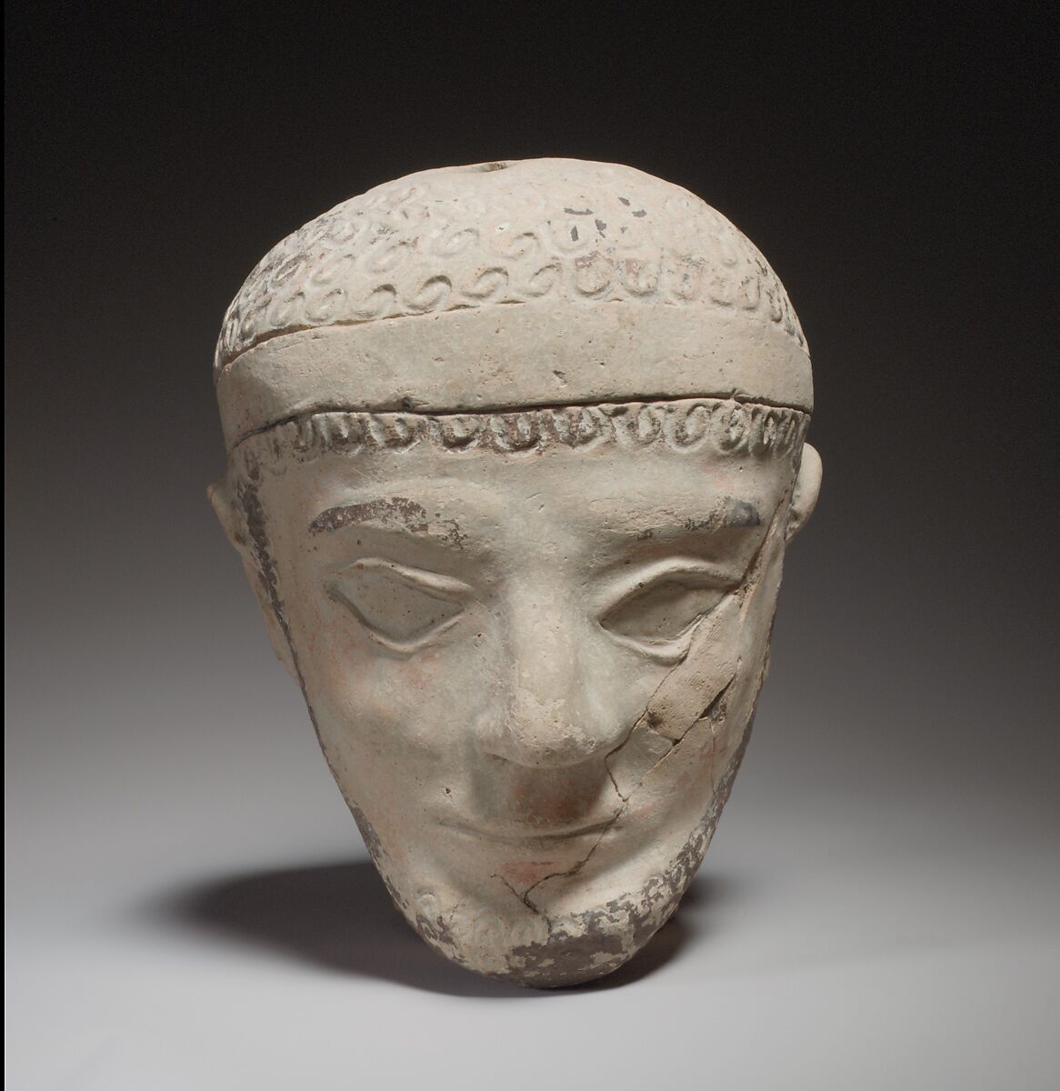 The added color, best preserved on the beard, indicates that the head was originally painted, enhancing the sensitive modeling of the face.