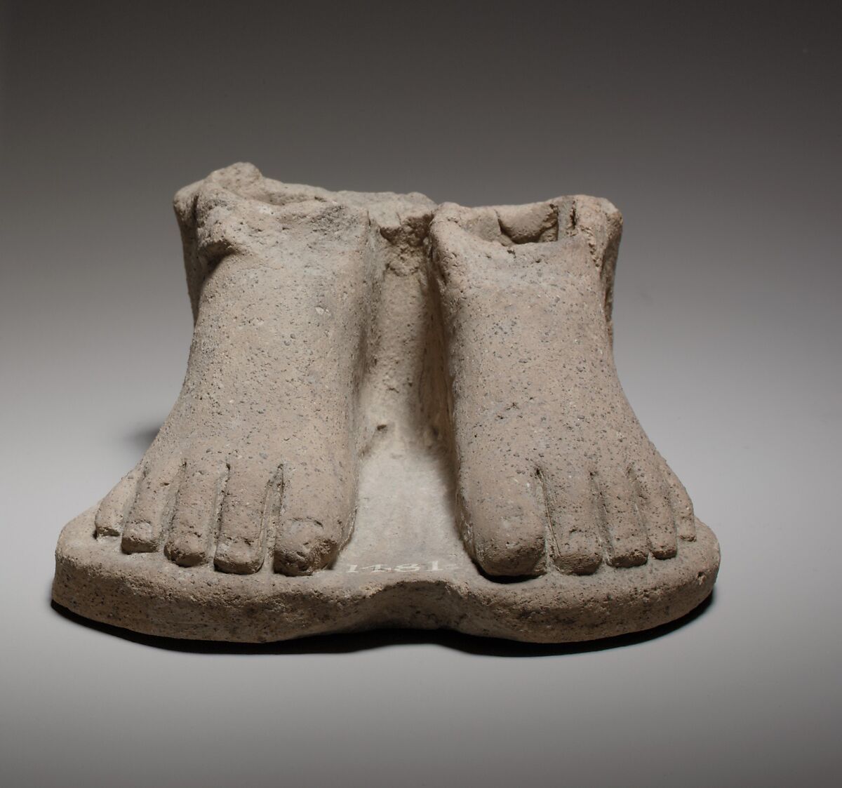 The hollow mold-made feet resting on a plinth are from a relief figure of approximately three-fourths lifesize.