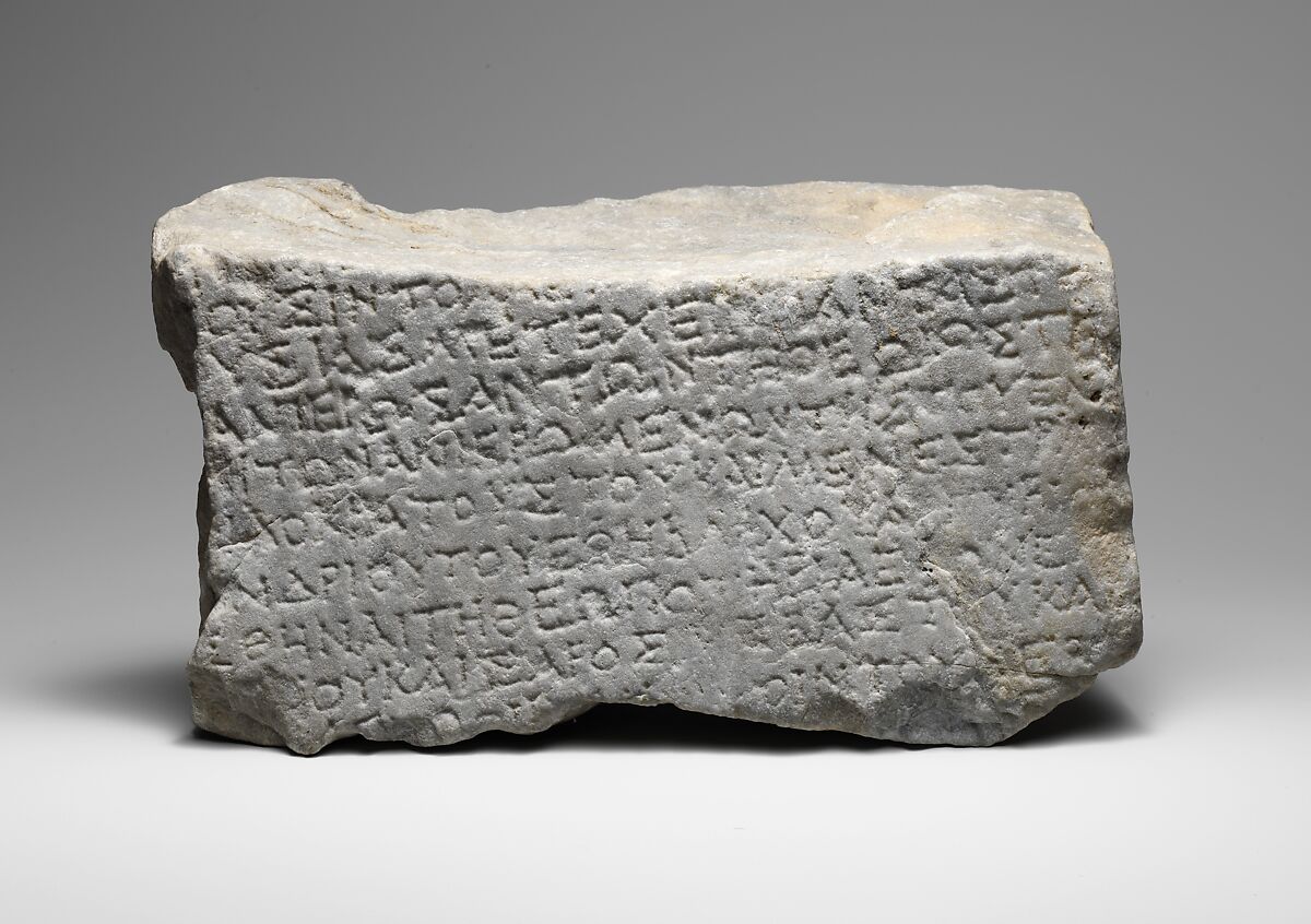 Part of an decree regulating sacrifices and offerings at a temple site. The name of the reigning emperor is lost but can be restored as Tiberius (r. A.D. 14–37), Gaius Caligula (r. A.D. 37–41), or Claudius (r. A.D. 41–54). The fragment also contains another Roman name, Quintus Sergius, and some scholars have tried to identify this man as the famous Roman governor of Cyprus, Sergius Paulus, who befriended St. Paul.