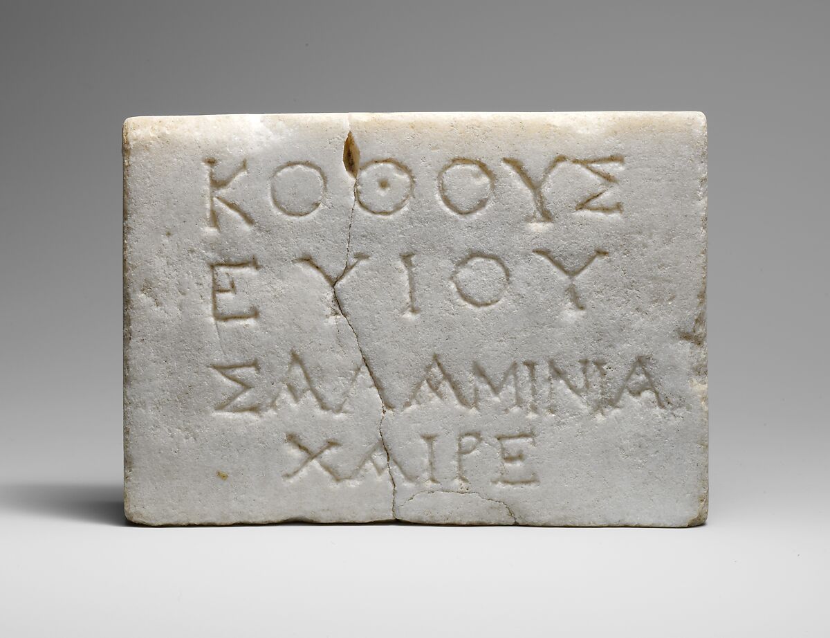 A funerary inscription for a woman called Salaminia, the wife or daughter of Kotho Euios.