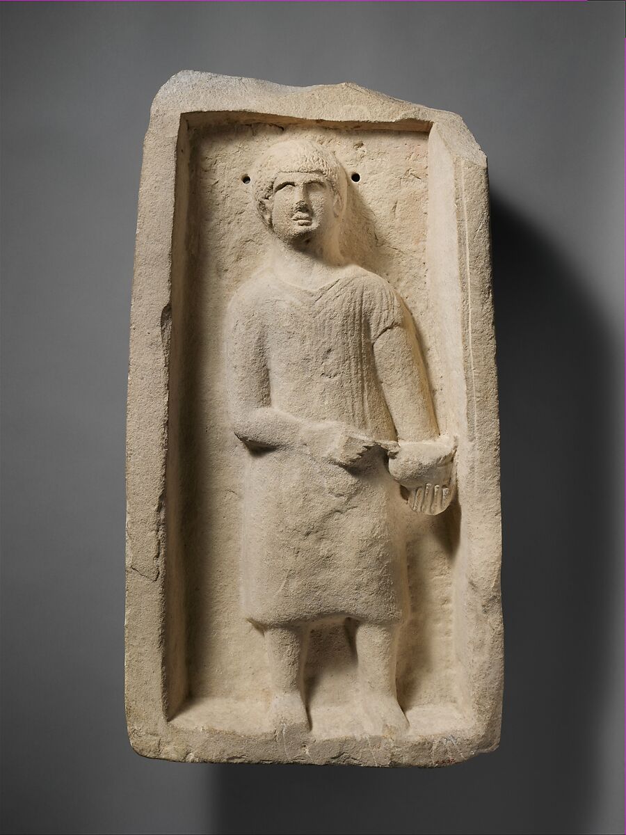 - Title:Limestone funerary stele of a boy