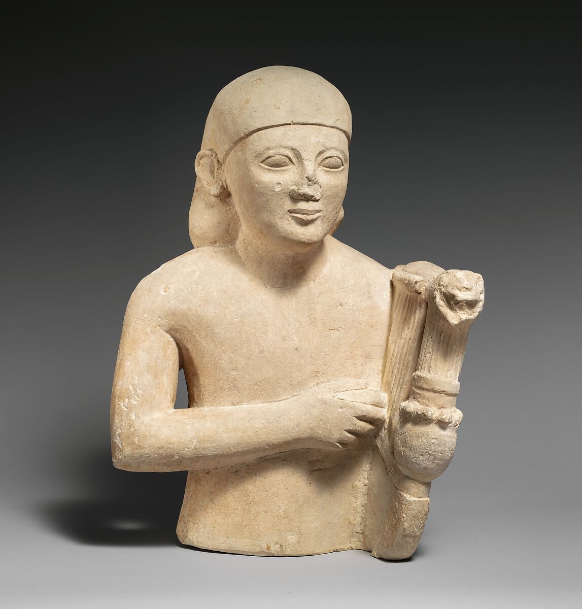 Limestone bust of a lyre-player