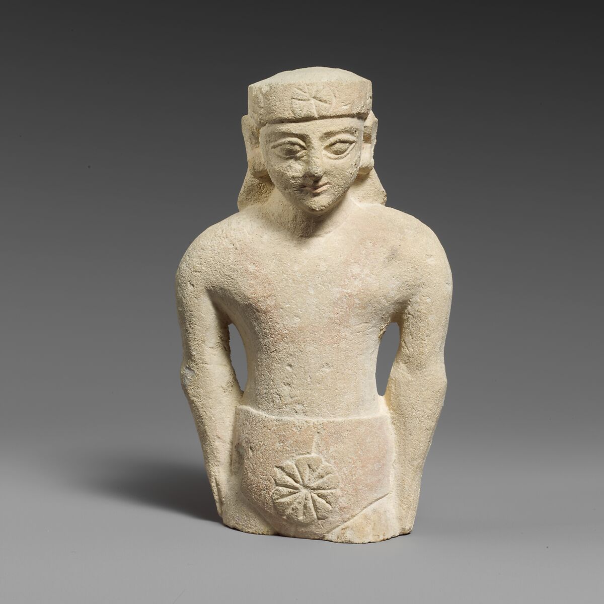 - Title:Limestone statuette of a male votary with Cypriot shorts and a diadem